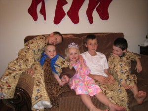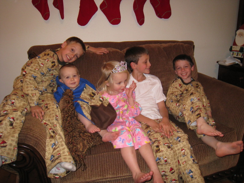 Merry Christmas. Logan was the first to wake up, just before 7…so not too early. We had to wake Dad and Sterling at 7:30, we were anxious for the fun to begin!