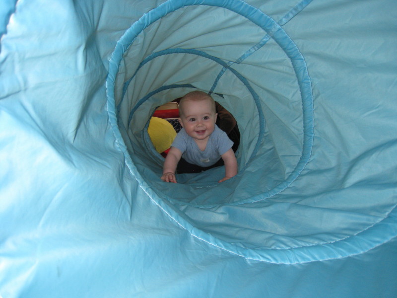 Sterling discovered crawling thru the tunnel…oh so exciting!