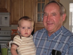 Sterling taking a turn in Grandpa Rowbury’s arms. This is the first time, that I can remember, that Sterling has snuggled and let Dad hold him.