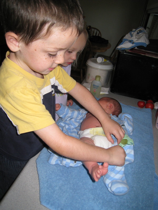 Sterling enjoys a bath with Bridget and Logan attending. Calvin asked to take pictures!