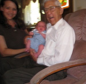 Sterling meets Great Grandpa Pratt on August 20th, he is one month old. By the way, Logan was the photographer!