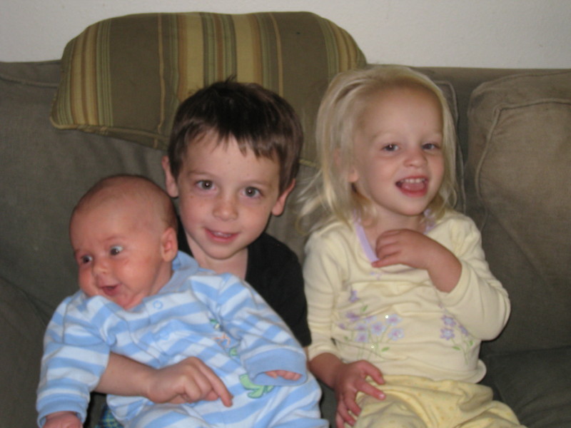 It has been a busy week. Calvin started Kindergarten, so now I have 2 boys to get ready for school every morning! He is loving school and feeling so big now. Logan and Bridget have started playing well while the older boys are at school. Sterling is growing fast and he is alert. Car rides get unpleasant, he is not too fond of being strapped in his car seat, but for the most part he is a good baby.