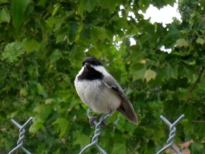 Enjoying the outdoors and following the wandering Eigen, Kimball spotted a cute little bird in the peach tree. Poor little bird must have been scared, but never flew away, he just kept hopping along the fence and in the trees. We enjoyed quite a bit of bird watching!