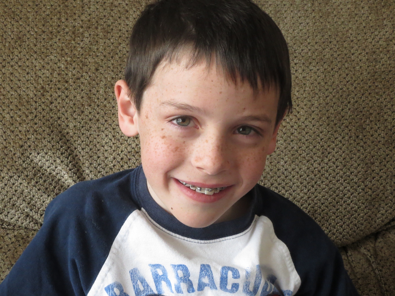 Logan got braces one week ago! We are already seeing progress! His upper front tooth came in behind the lower teeth…so braces to pull it forward and stop the damage to the tooth. Probably he will need braces again when all his teeth are in :)