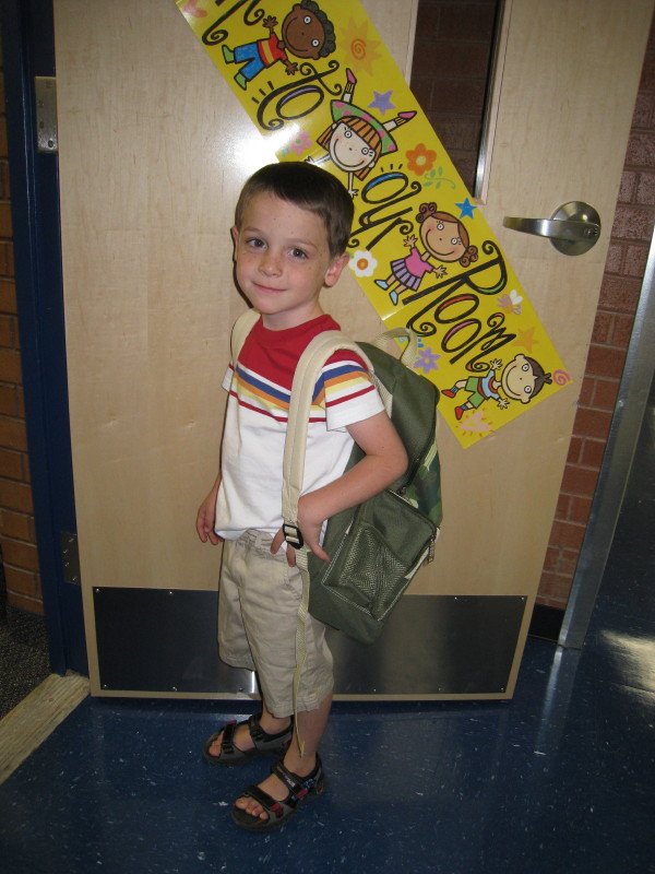 Logan could hardly wait for school to start.  All morning he was ready to go and kept asking if it was time!  He loves Kindergarten.  Bonus…he had to have the camo backpack!  He loves army guy camo!