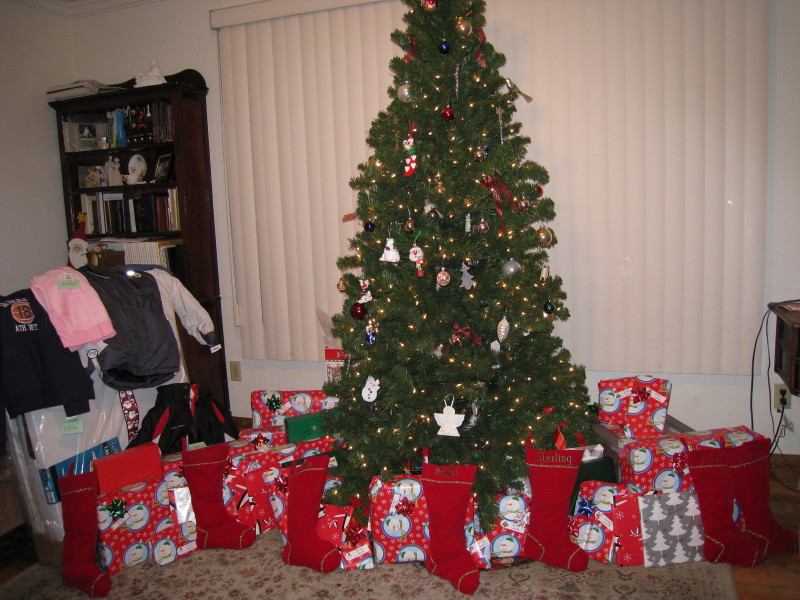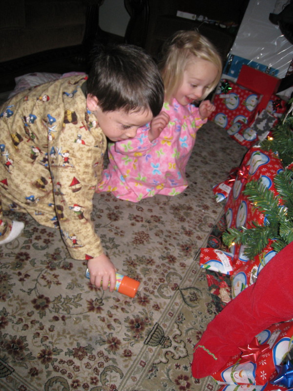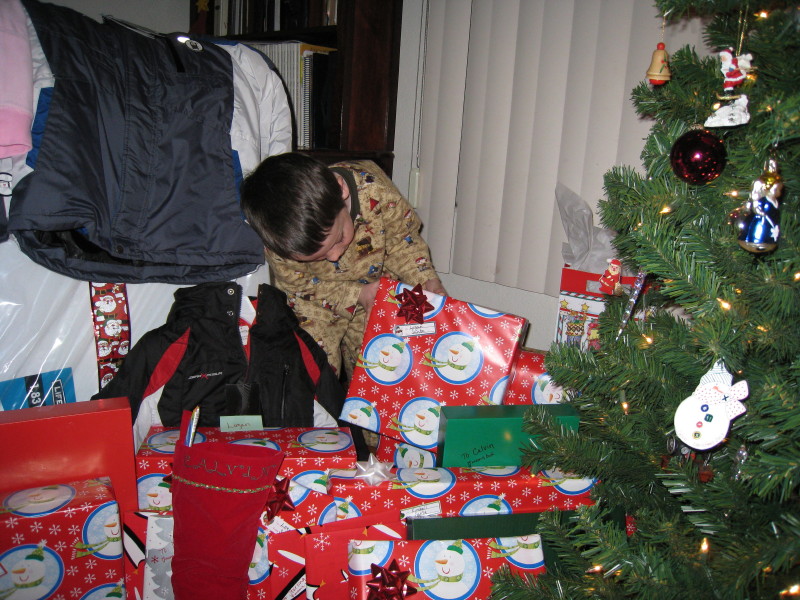 Merry Christmas. Logan was the first to wake up, just before 7…so not too early. We had to wake Dad and Sterling at 7:30, we were anxious for the fun to begin!