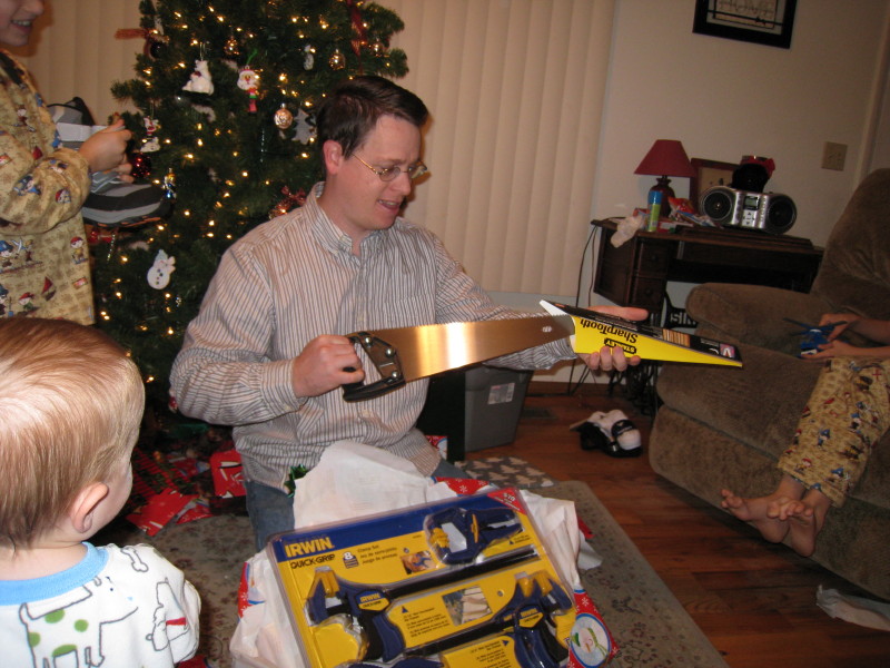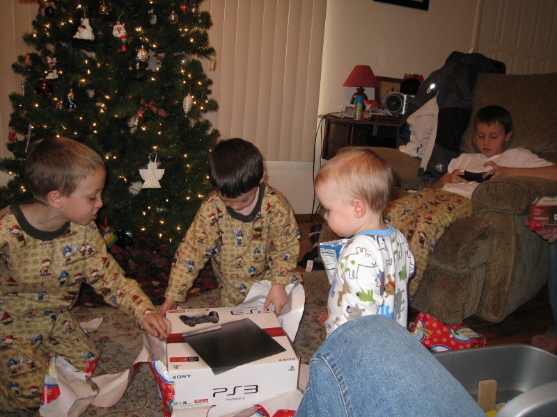 We opened almost all the presents…and then the kids were done. We just waited 10-15 minutes while the kids played with their toys, until someone finally said, “let’s open the family presents” a new PS3 and game “little big planet.”