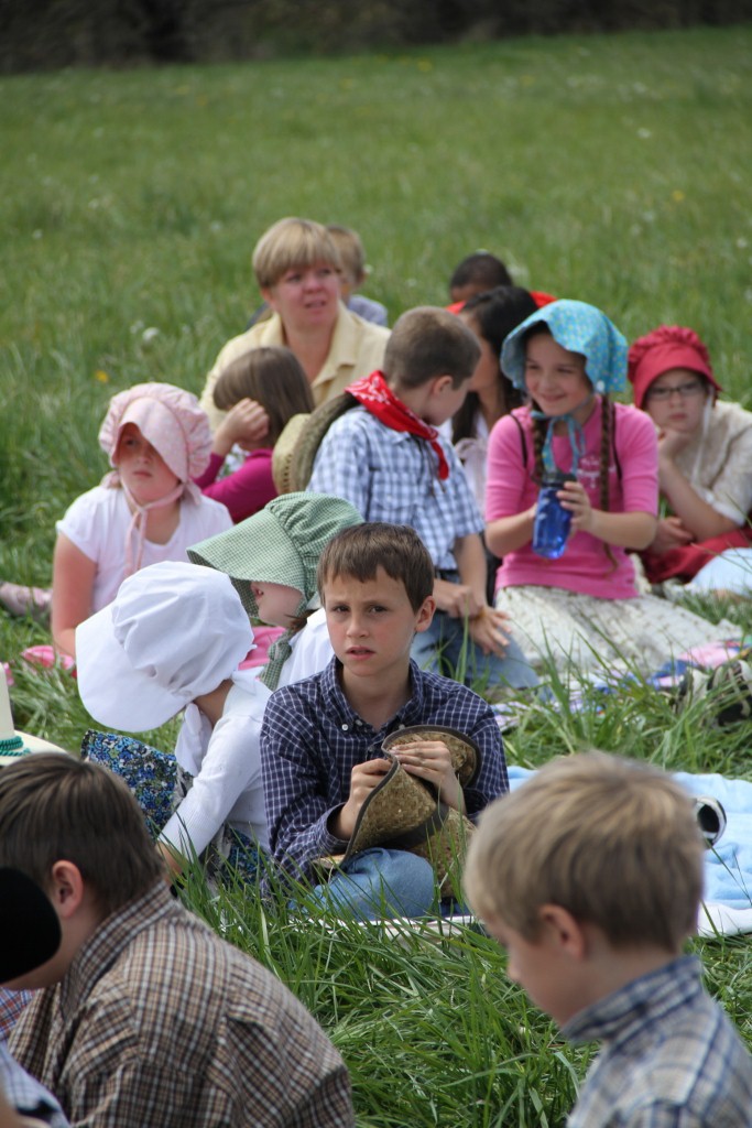 Kimball and all the 4th grade kids went on a pioneer handcart trek.  I joined them in the gathering field for lunch and pioneer activities.  The trek was all of 2 miles…and the kids gained a big understanding of the pioneers going west.