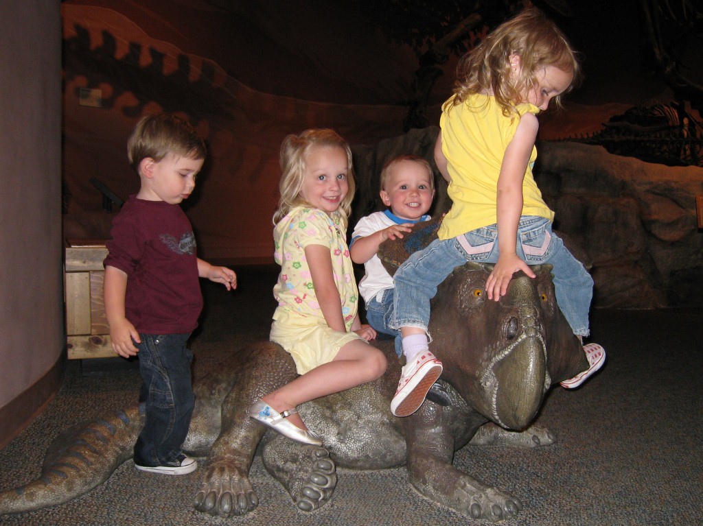 Mid month: Logan, Bridget, Sterling and I joined aunts, uncle, and cousins at the dino museum.