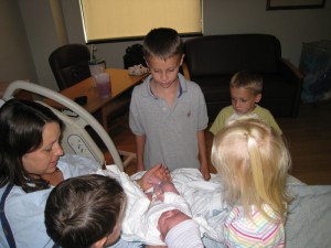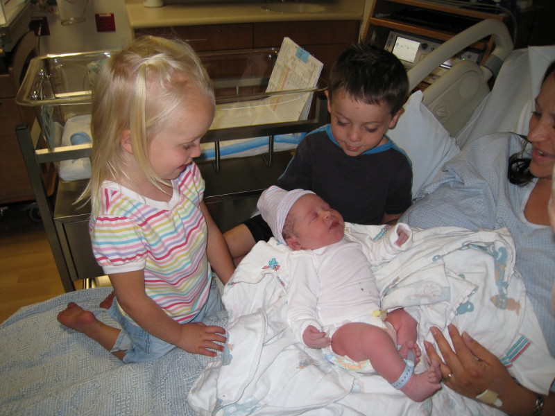 Hospital Visits Posted on July 21, 2008 by kathy Ammon brought the kids to meet their new baby brother when Sterling was about 4 hours old. Later in the day they visited again with Grandma, Grandpa, and April Rowbury.