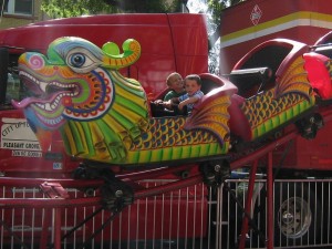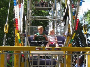 Calvin wanted to try the Ferris wheel and Bridget was brave enough to ride too. They really liked it!
