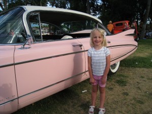 Each kid chose their favorite car to get a picture by…of course Bridget chose the pink Cadillac.