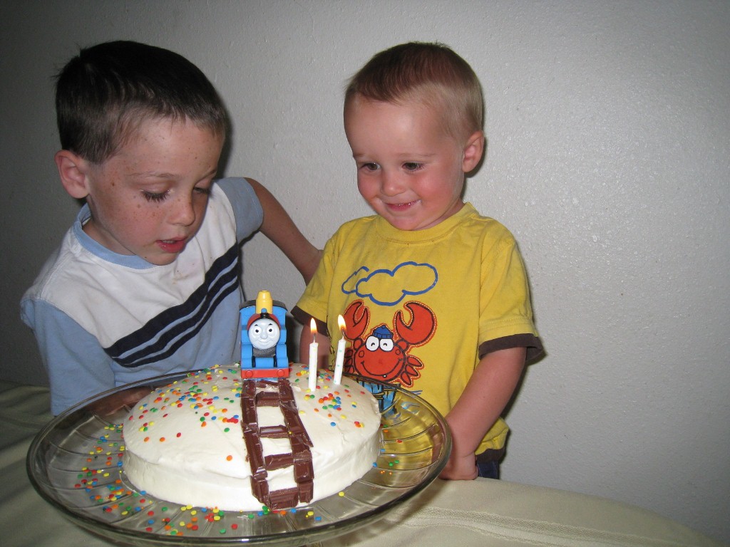 Sterling’s 2nd birthday was July 20th! We had a choo choo cake and present time…what could be more fun than a lawnmower so he can be just like Dad?
