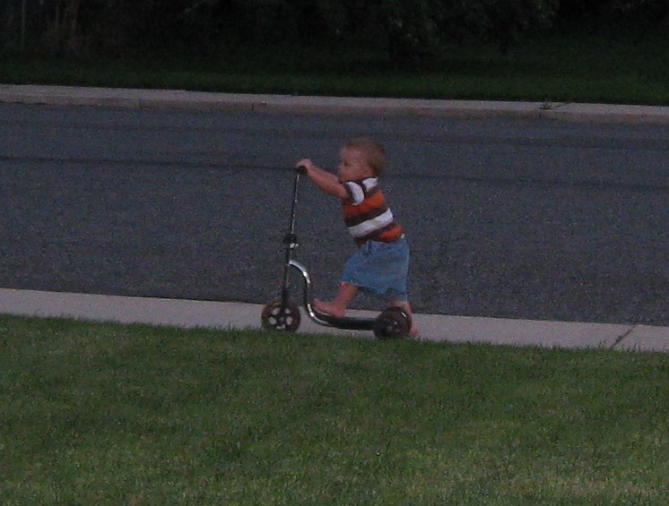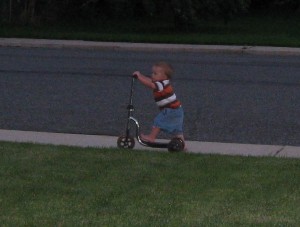 Sterling loves to ride “my scooter.”  He figured it out all by himself at 2 years 1 month old!