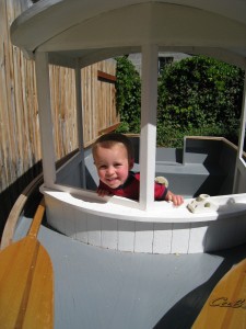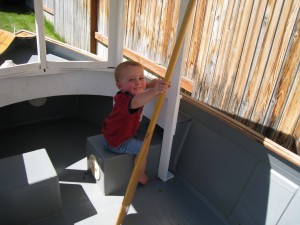 Mr Tugboat Posted on October 10, 2010 by kathy Labor day, Ammon, Bridget and Sterling cleaned out the tugboat! It had spiders and dirt…you can’t play in such a dirty dangerous place…so the kids have found new love for the tugboat. Sterling especially loves the new play place.